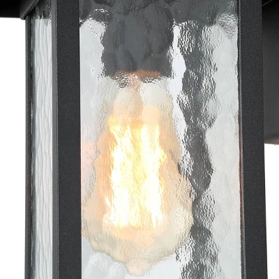 - Matte black finish. Sturdy steel construction. Water textured glass open to bottom shade.
