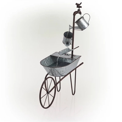 36″ Metal Watering Can Wheelbarrow Fountain – Alpine Corporation