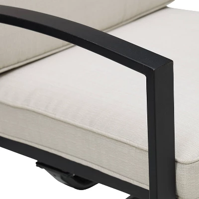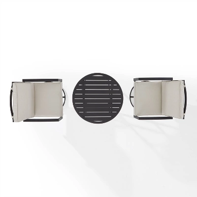 At home on a small balcony or deck, the Kaplan 3pc Bistro Set creates an intimate outdoor dining space. Two cushioned swivel dining chairs feature weather-resistant cushion covers and pair beautifully with the powder-coated steel folding table. With a classic slatted top, the folding bistro table offers enough space to share an evening meal and folds away easily when not in use. Cozy up and enjoy a meal under the stars with the Kaplan bistro set.