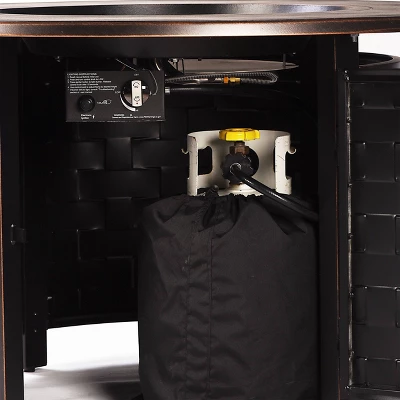 - This premium fire table set has a black antique copper finish applied via durable powder coat