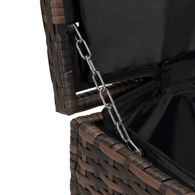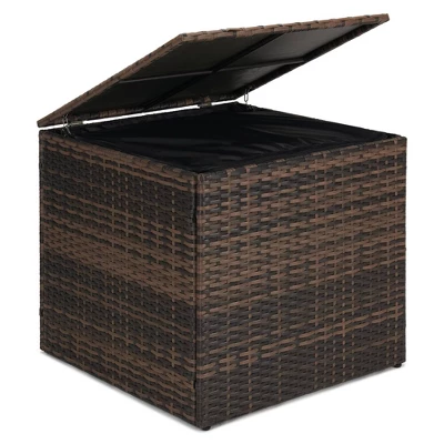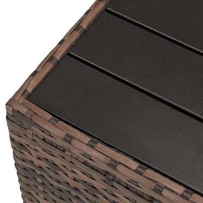 This product showcasing one 3-seater sofa, 1 loveseat, 2 armchairs, 1 coffee table and 1 side table. Perfect for seating up to 7-people, this weather-resistant set is crafted from resin wicker rattan and is paired with polyester blend-upholstered cushions. Use this coffee table and side table’s storage space to stow spare all-weather pillows and cushions, then invite guests over to enjoy cocktails and conversational fresco.