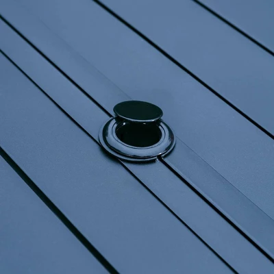 7pc Outdoor Dining Set With Steel Swivel Chairs & Large Rectangle Metal Table With Umbrella Hole – Black – Captiva Designs