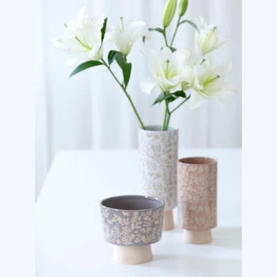 Give your home décor an artistic update with Shiraleah’s Alameda Planter. This planter features a neutral grey and beige colorway with a fresh floral pattern, making it the perfect addition to your home décor. Measuring D 7″ x H 6″, and made from stoneware, the Alameda Planter is durable and waterproof, making it ideal for real or faux greenery. Pair with other items from the Shiraleah home collection to complete your look!