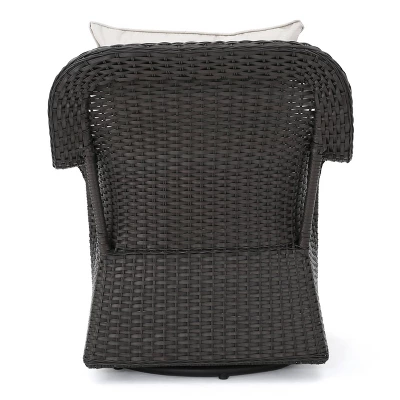 Amaya 5pc Outdoor 4 Wicker Swivel Chair & Fire Pit Set – Dark Brown/Beige/Matte Black – Christopher Knight Home