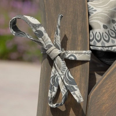 - Two sets of ties secure the patio dining cushion firmly in place, while a button adds a decorative touch