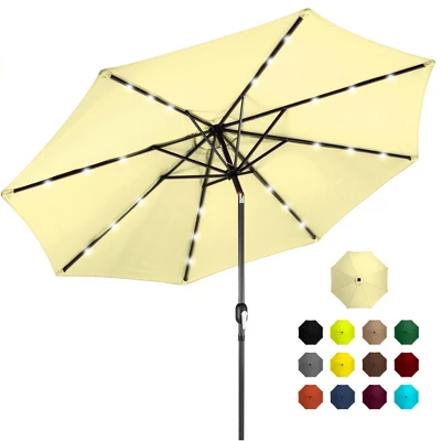 Looking for superior shading? Look no further! These umbrellas help find the perfect angle. Enjoy more shade as you adjust the canopy to block the sun all day long (up to 45-degrees). In the day, turn your outdoor dining area into a shaded lounge for family and friends. In the night use solar powered LED to reignite your passion for outdoor dining and brighten your summer nights. Versatility meets durability; the fabric shade is UPF50 certified to diffuse sunlight, a durable rust-resistant steel pole prevents wear over time. A built-in crank pully-assisted crank opens and closes the umbrella while a push-button tilt lets you freely adjust the angle with a locking tilt joint. For an umbrella for all occasions, the choice is obvious.
