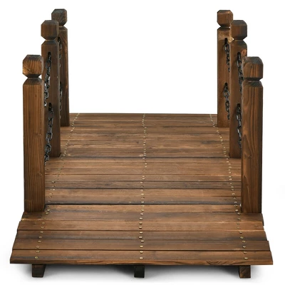 Costway 5 Ft Wooden Garden Bridge Arc Footbridge Stained Finish Walkway W/Rails