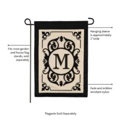 Evergreen Flag Cambridge Chic Letter M Monogram Applique Garden Flag – 12.5″ Wide X 18″ High