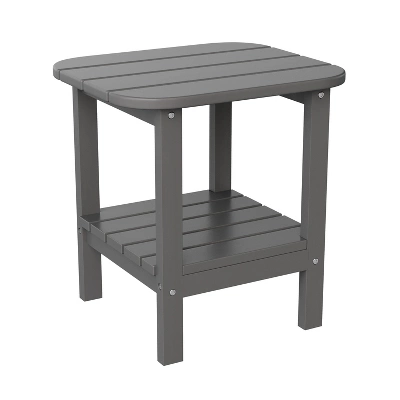 Add elegant style and much needed horizontal space to your outdoor lounge areas with this 2 tier Adirondack patio table. Beautifully crafted from all weather HDPE, this outdoor table is the perfect piece to complement your existing furniture or match with new Adirondack style pieces. UV fade resistance allows for year round use while great looks mean you can also use it indoors. Your new table assembles quickly and easily and wipes clean with a damp cloth making it ideal for busy households. Purchase several to mix and match colors or maintain a uniform palette to suit your personal taste.