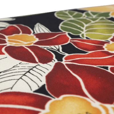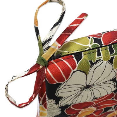 Say “Aloha” to the spirited flowers of Hawaii, which wonderfully blend together in the style of this outdoor bench cushion. Set against a black ground, green, red and maize coordinate beautifully to create a robust floral pattern. Additional features of this outdoor bench cushion include square corners, 14″ ties and recycled polyester fill with a zippered closure for easy removal. Also suitable for indoor use.