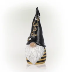 12″ Polyresin “Let It Bee” Indoor/Outdoor Garden Gnome Statue Black/Yellow – Alpine Corporation