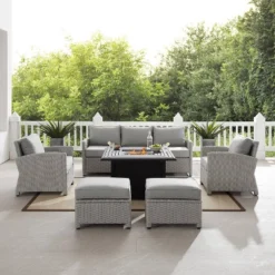 7pc Brava Acacia Patio Sectional Sofa Set With Fire Pit Gray – Christopher Knight Home