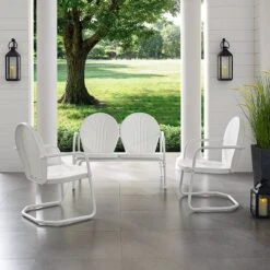 Griffith 3pc Outdoor Conversation Set With Loveseat, Arm Chair & Accent Table – White – Crosley