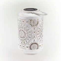 Outdoor Metal Lace Cutout Lantern With Rotating LED Lights Antique White – Alpine Corporation