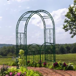 Achla Designs 114.5″ Elegant Handcrafted Monet II Iron Garden Arbor Graphite Powder Coated Finish