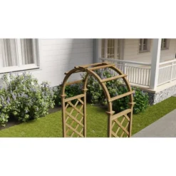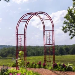 Achla Designs 92″ Elegant Handcrafted Lattice Iron Garden Arbor Graphite Powder Coated Finish