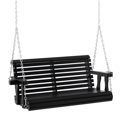 Outsunny 46″ 2-Person Porch Swing Wooden Patio Swing Bench With Cup Holders, Slatted Design, & Chains Included, 440lb Weight Capacity