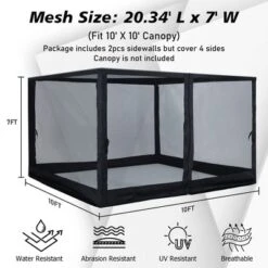 Aoodor Gazebo Netting Screen Replacement Universal 4-Panel Sidewalls 10′ X 13′ (Only Netting)