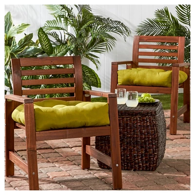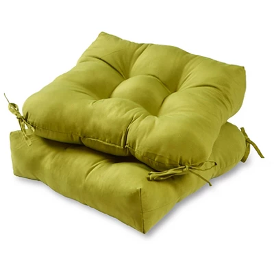 Enhance the look and feel of your patio furniture with this Kensington Garden Outdoor Dining Cushion Set. These cushions fit most standard outdoor furniture, and come with string ties to keep cushions in place. Cushions are circle tufted to prevent fill from shifting. Each cushion is overstuffed for extra comfort and durability with 100% recycled, post-consumer plastic bottles, and covered with a UV resistant, 100% polyester outdoor fabric that resists fading. A variety of rich color options are available to coordinate with your outdoor decor.