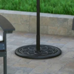 Emma And Oliver Commercial 35.25″ Round Metal Garden Patio Table Set W/ 4 Round Back Chairs