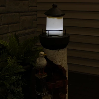 Lead your guests to your home with this elegant, gull’s cove lighthouse water fountain with LED lights. This beautiful water fountain features a bright LED light which is great for guiding people up your driveway or front porch steps in the dark. Made of durable yet lightweight polyresin, this colorful fountain features a unique lighthouse design complete with a friendly sea gull. Polyresin is easy to maneuver wherever desired with its lightweight material and is also easy to clean. You will love the relaxing sound of running water as it trickles through the fountain. It is circulated through the fountain thanks to a submersible electric pump. This makes the fountain easy to set up with no plumbing required. Simply set this fountain wherever desired, fill the bottom basin with water, plug in to your nearest electrical outlet, and transform your outdoor area with soothing sounds. Turn on the LED lights at night to enjoy in the evening as well.