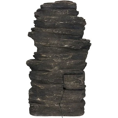 • EASY TO USE: The patio water fountain requires no plumbing and can plug into any standard electrical outlet for easy set up. It includes an electric submersible pump and LED lights that will illuminate your outdoor rock fountain in the evening.