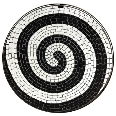 - Black and white spiral glass mosaic pattern.