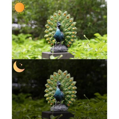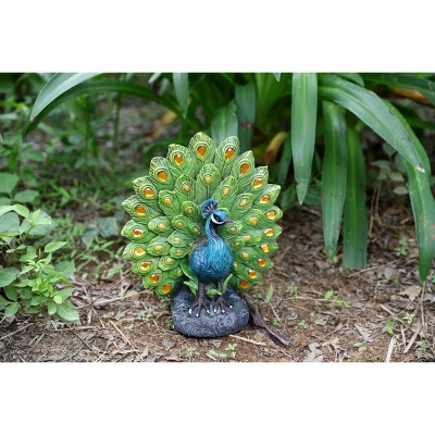 Enhance your garden, yard, or patio with the TECHKO Peacock Statue with Solar Spotlight! This Decorative Statue will bring an enchanting ambiance and beauty to your garden, yard, or patio. Each statue is crafted with resin that is waterproof, long lasting and beautifully hand painted. The external solar spotlight is powered by the sun with the built-in solar panel, it will really light up the statue at night for an eye-catching decoration. The Techko Peacock Statue with Solar Spotlight will make a unique and magical addition to your yard or gift one to a friend or family member so they too can create and enjoy a fun and decorative space.