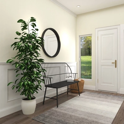 - •Farmhouse metal bench highlights a matte black overall finish